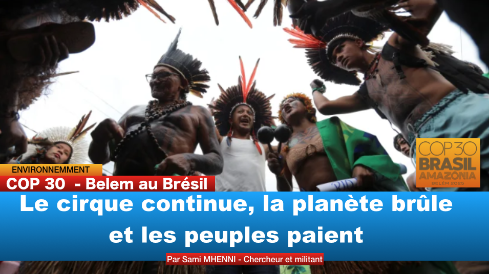 Par Sami MHENNI – Chercheur et militant écologiste La 30ᵉ Conférence des Parties se termine… encore une fois avec l’illusion du progrès. Entre balades touristiques en Amazonie et mini-matches de foot pour les délégations, les COP deviennent le théâtre d’un greenwashing multilatéral qui protège les intérêts économiques, pas la planète. En près de 30 éditions, […]