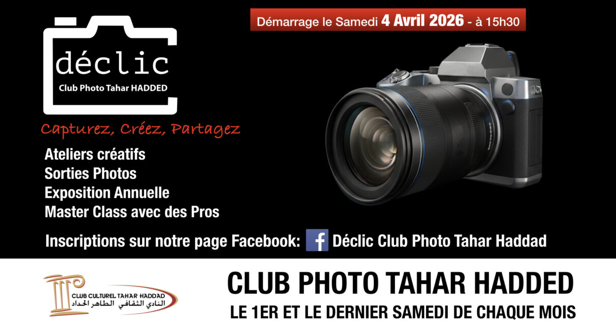 Le Club Photo Centre Culturel Tahar Hadded – Déclic lance officiellement ses activités au sein du prestigieux Centre culturel Tahar Hadded, espace emblématique de création et de réflexion.
