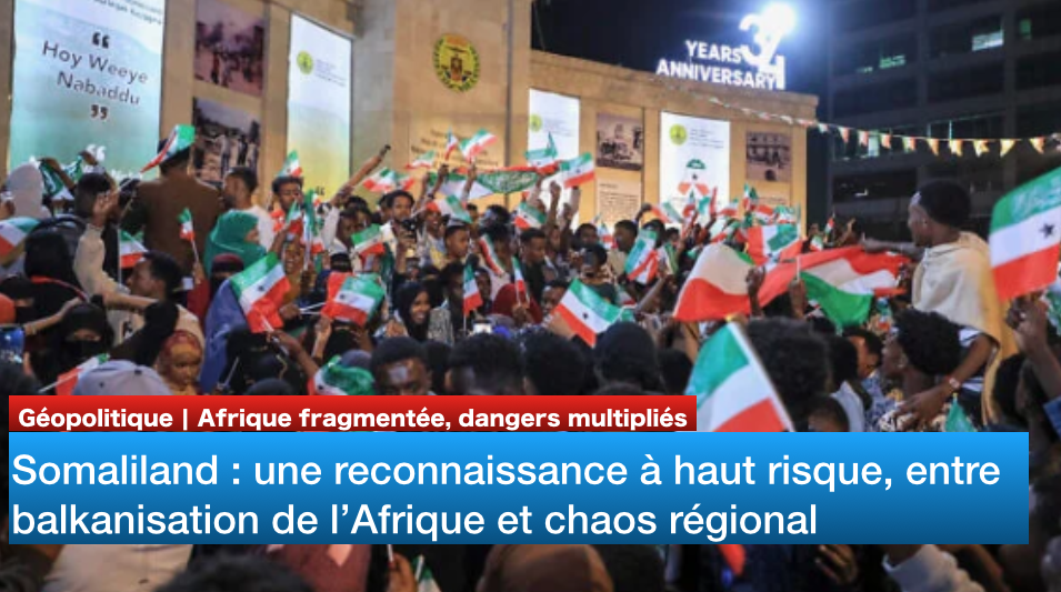 La reconnaissance annoncée du Somaliland par Israël ne relève ni du hasard ni d’un simple geste diplomatique. Elle s’inscrit dans une stratégie plus large de recomposition géopolitique, où la fragmentation des États africains devient un levier de domination. Derrière le discours de l’« autodétermination », se dessinent des risques majeurs : affaiblissement des États-nations, multiplication des foyers séparatistes et ouverture de brèches sécuritaires exploitables par des groupes jihadistes comme Daech, avec des répercussions directes sur toute la région, du Soudan à l’Égypte.